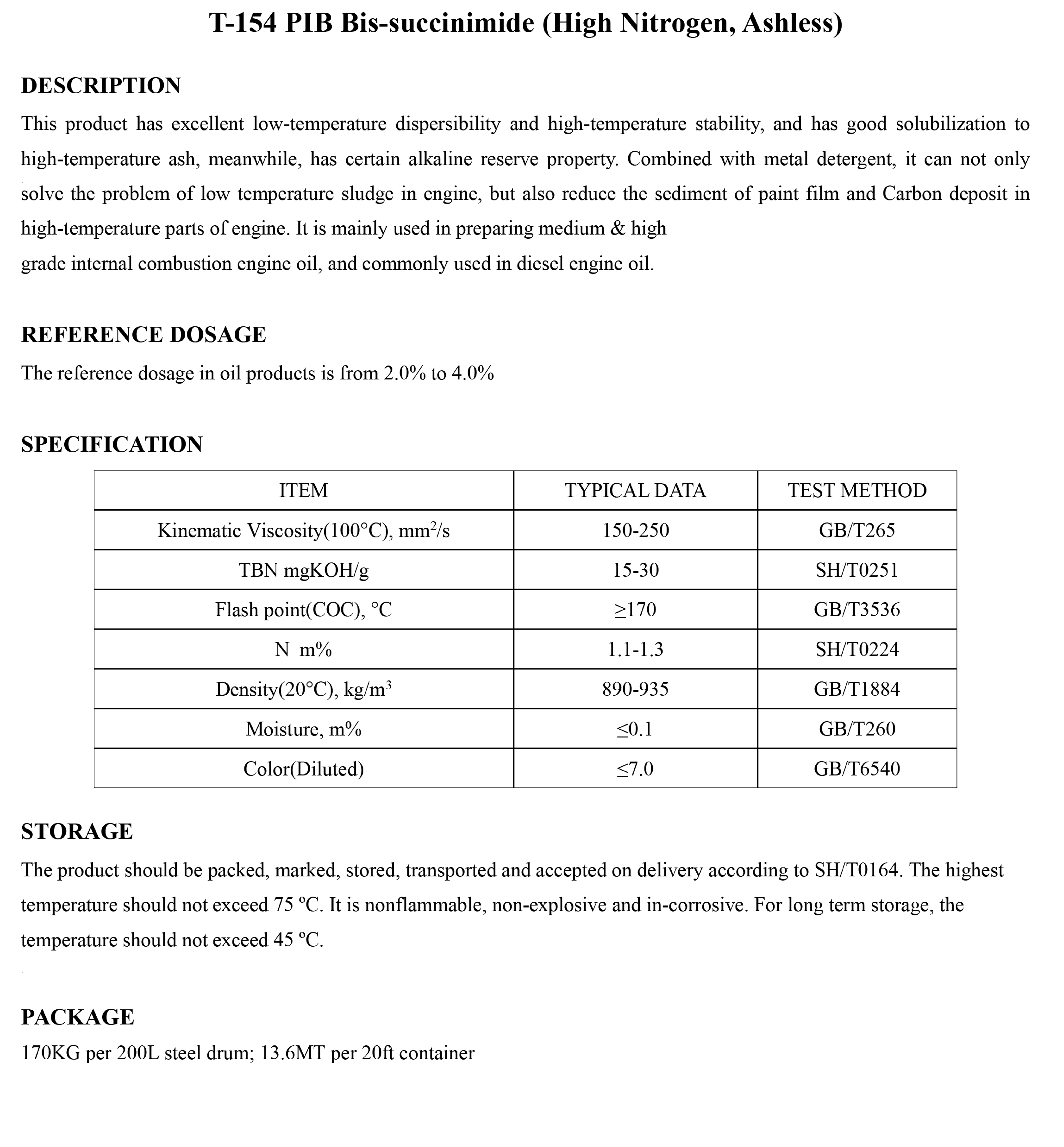 T-154 PIB Bis-succinimide (High Nitrogen, Ashless)-Dispersants-錦州新興石油添加劑有限責(zé)任公司
