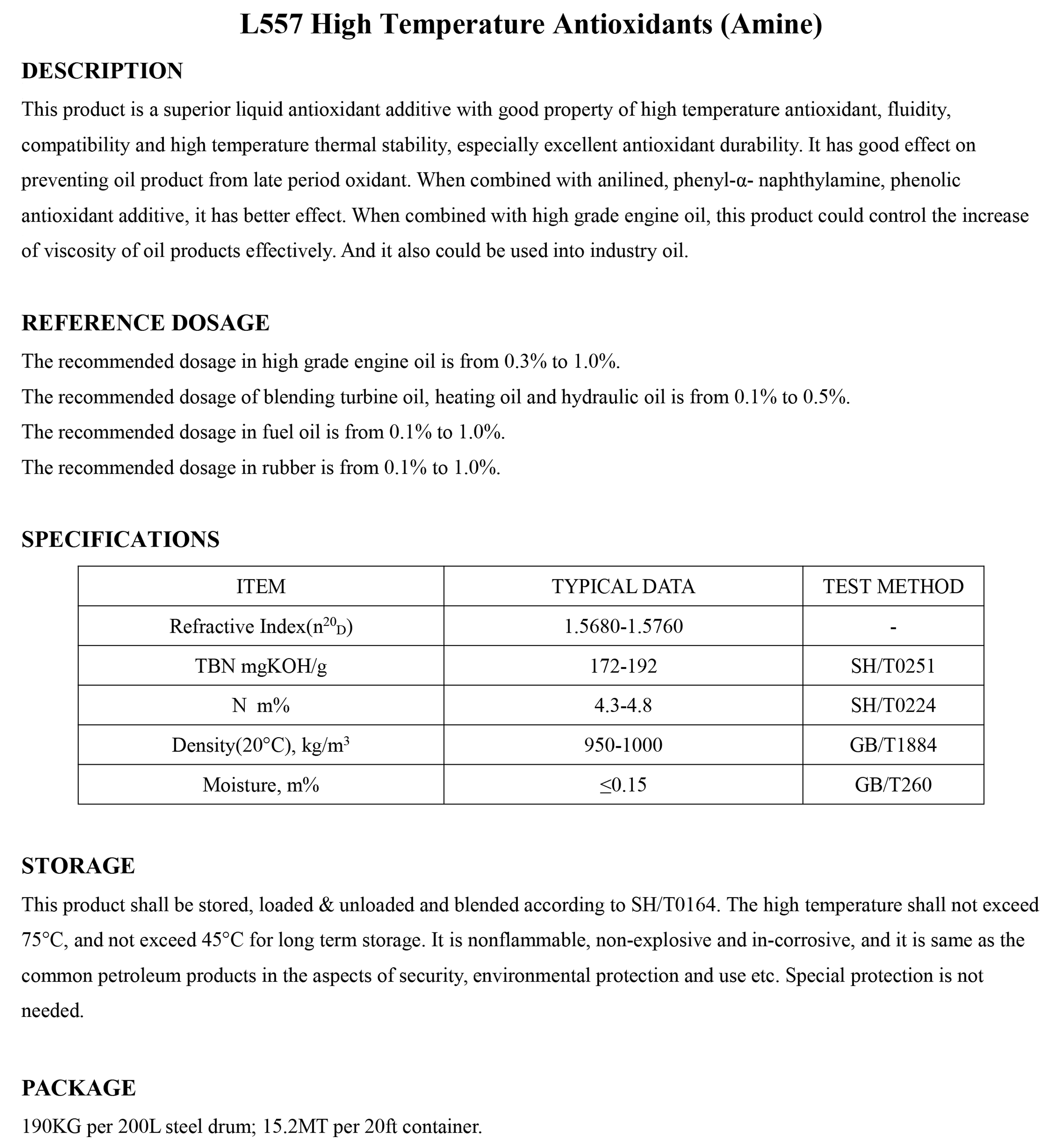 L557 High Temperature Antioxidants (Amine)-Antioxidant and Antiglue Additive-錦州新興石油添加劑有限責任公司