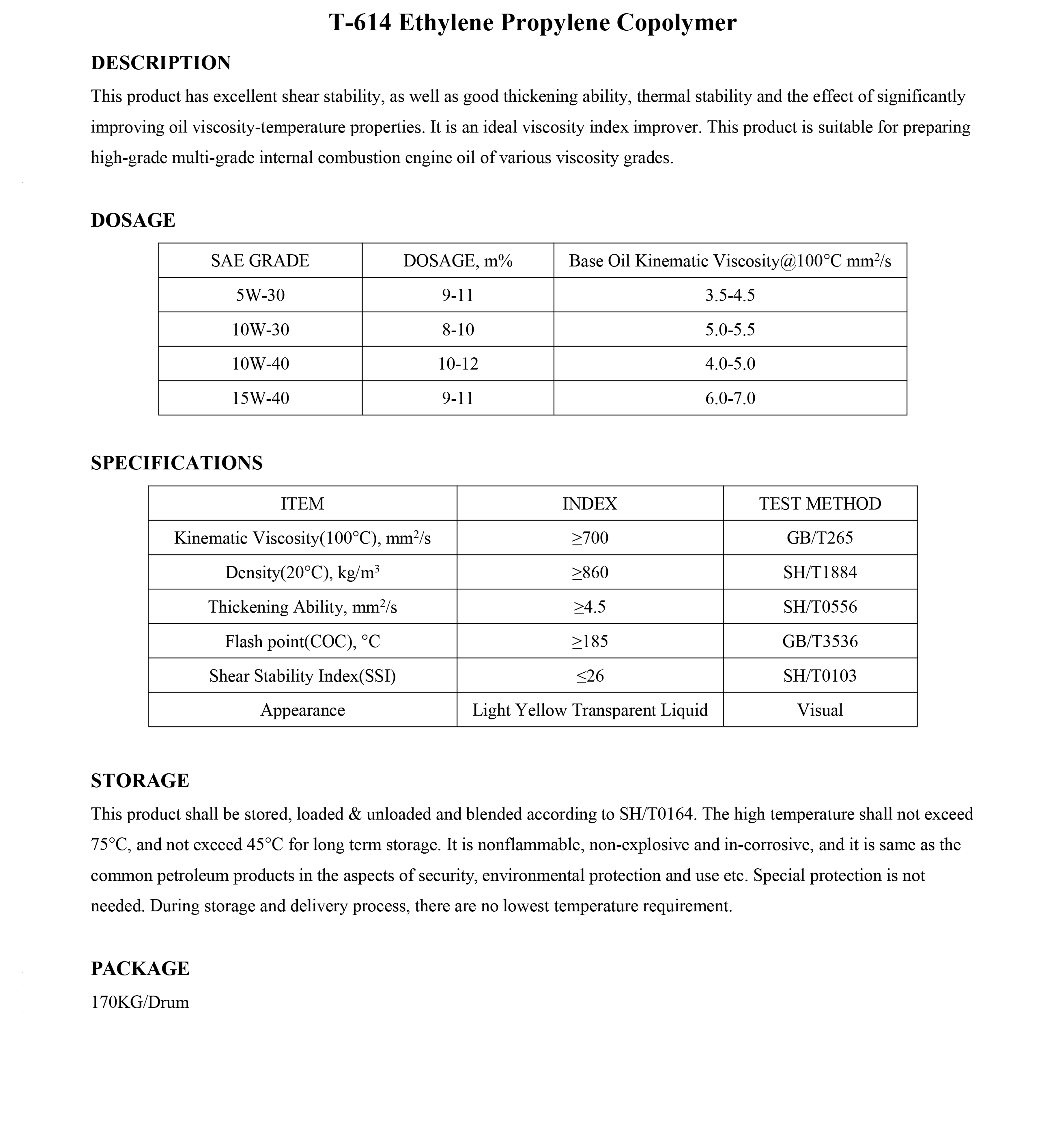 T-614 Ethylene Propylene Copolymer-Viscosifier-錦州新興石油添加劑有限責(zé)任公司