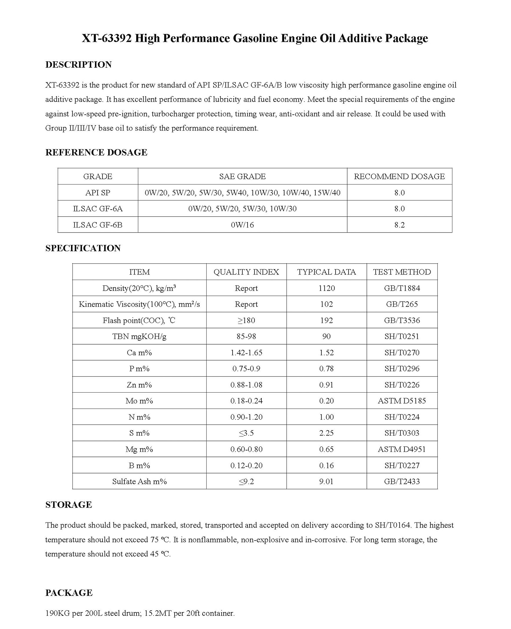 XT-63392 High Performance Gasoline Engine Oil Additive Package-Engine Oil Additive Package-錦州新興石油添加劑有限責任公司