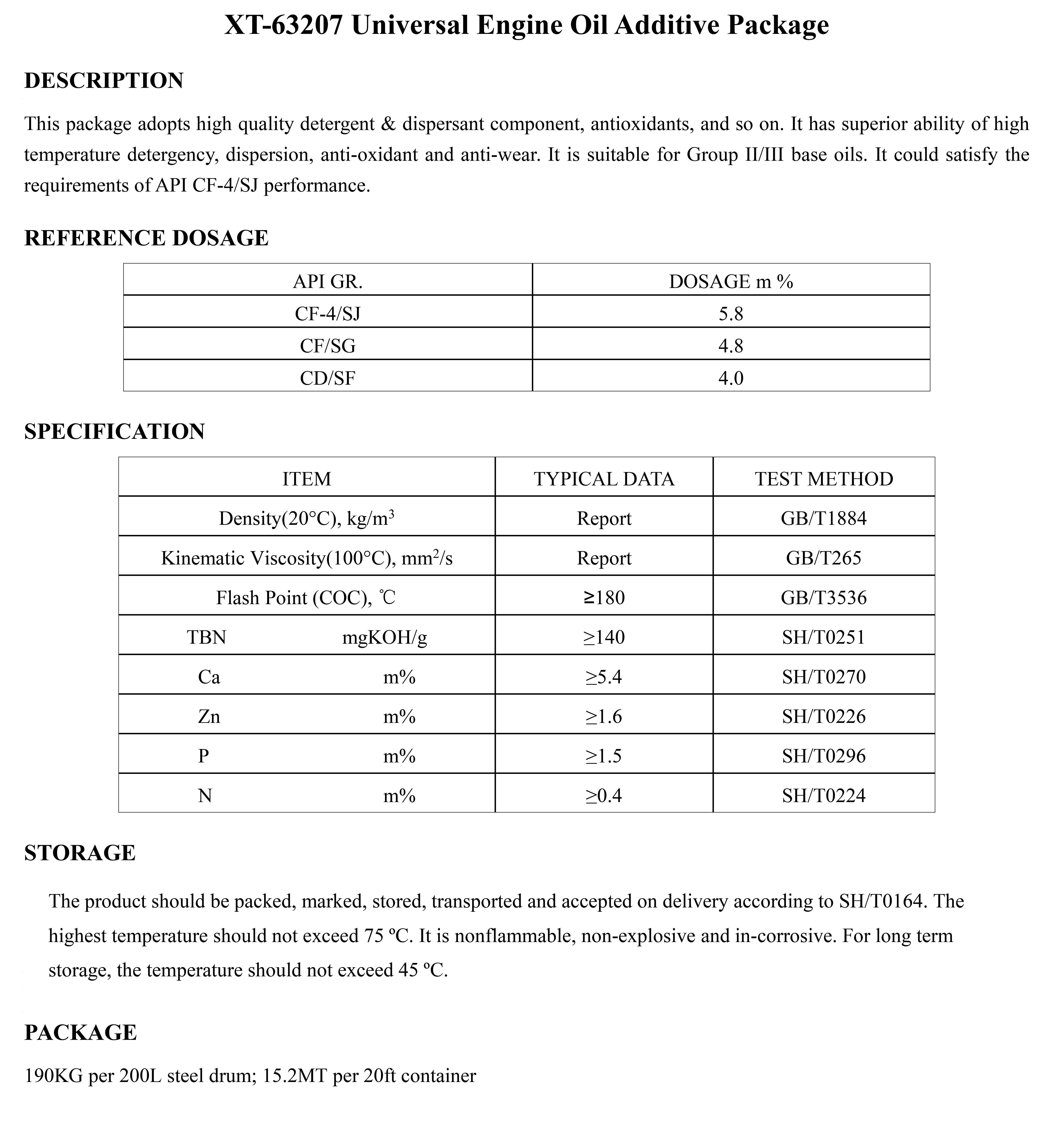 XT-63207 Universal Engine Oil Additive Package-Engine Oil Additive Package-錦州新興石油添加劑有限責(zé)任公司
