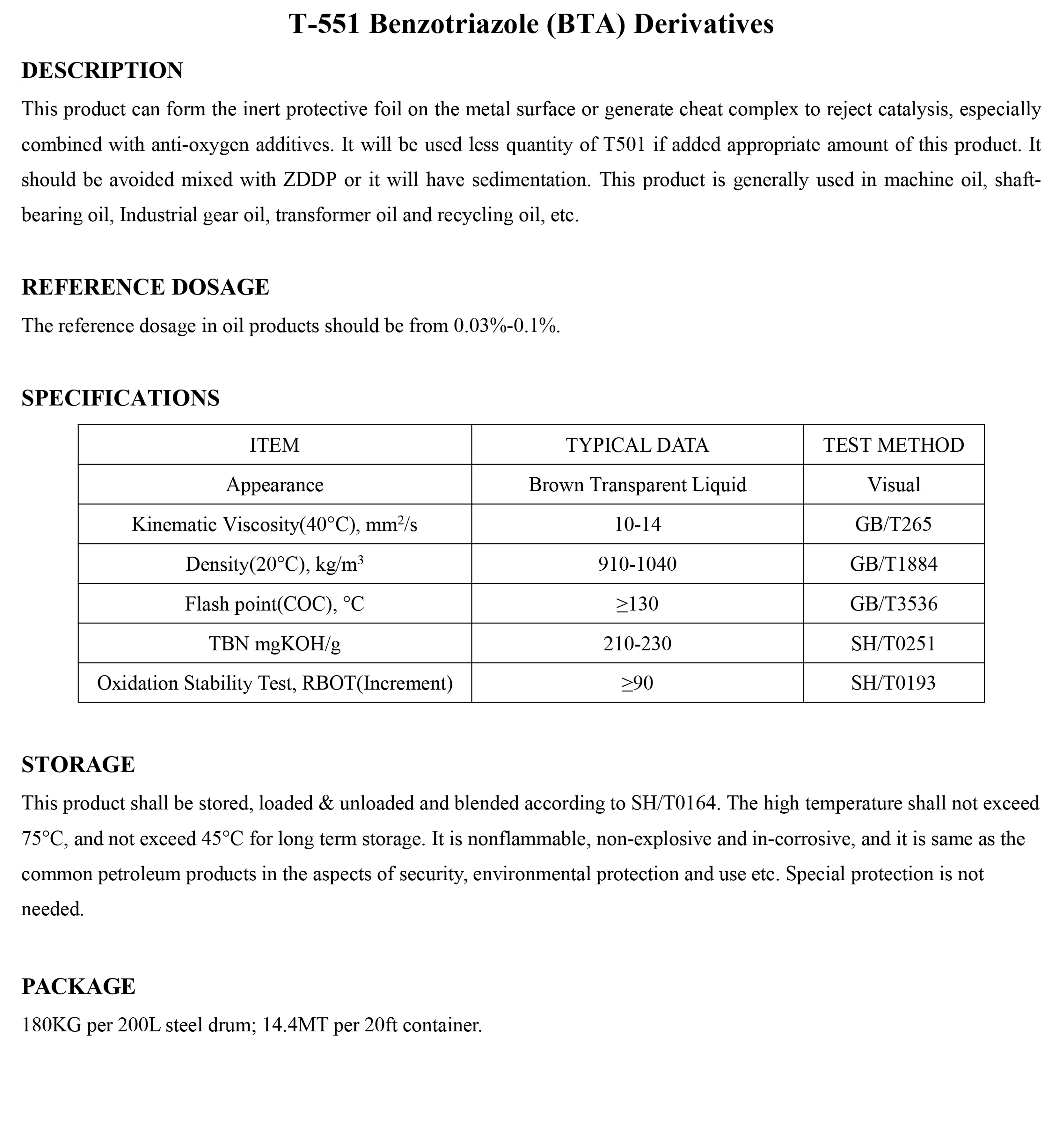 T-551 Benzotriazole (BTA) Derivatives-Antioxidant and Antiglue Additive-錦州新興石油添加劑有限責(zé)任公司