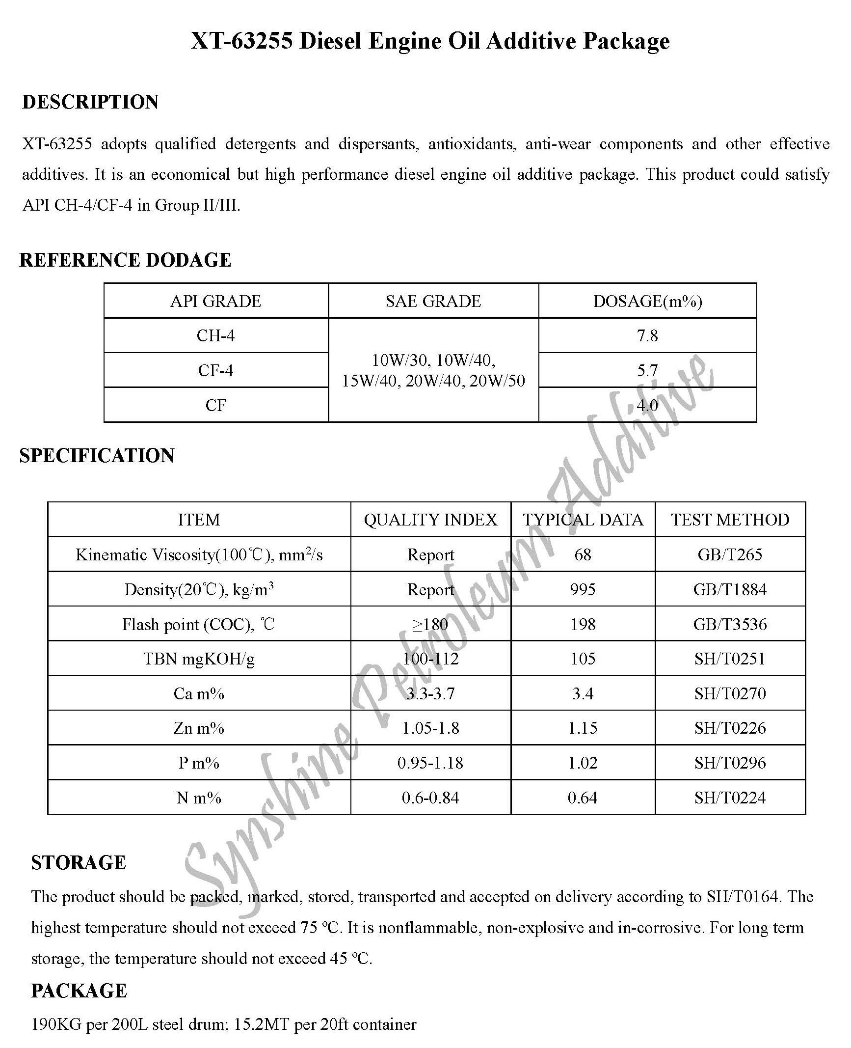 XT-63255 Diesel Engine Oil Additive Package-Engine Oil Additive Package-錦州新興石油添加劑有限責(zé)任公司