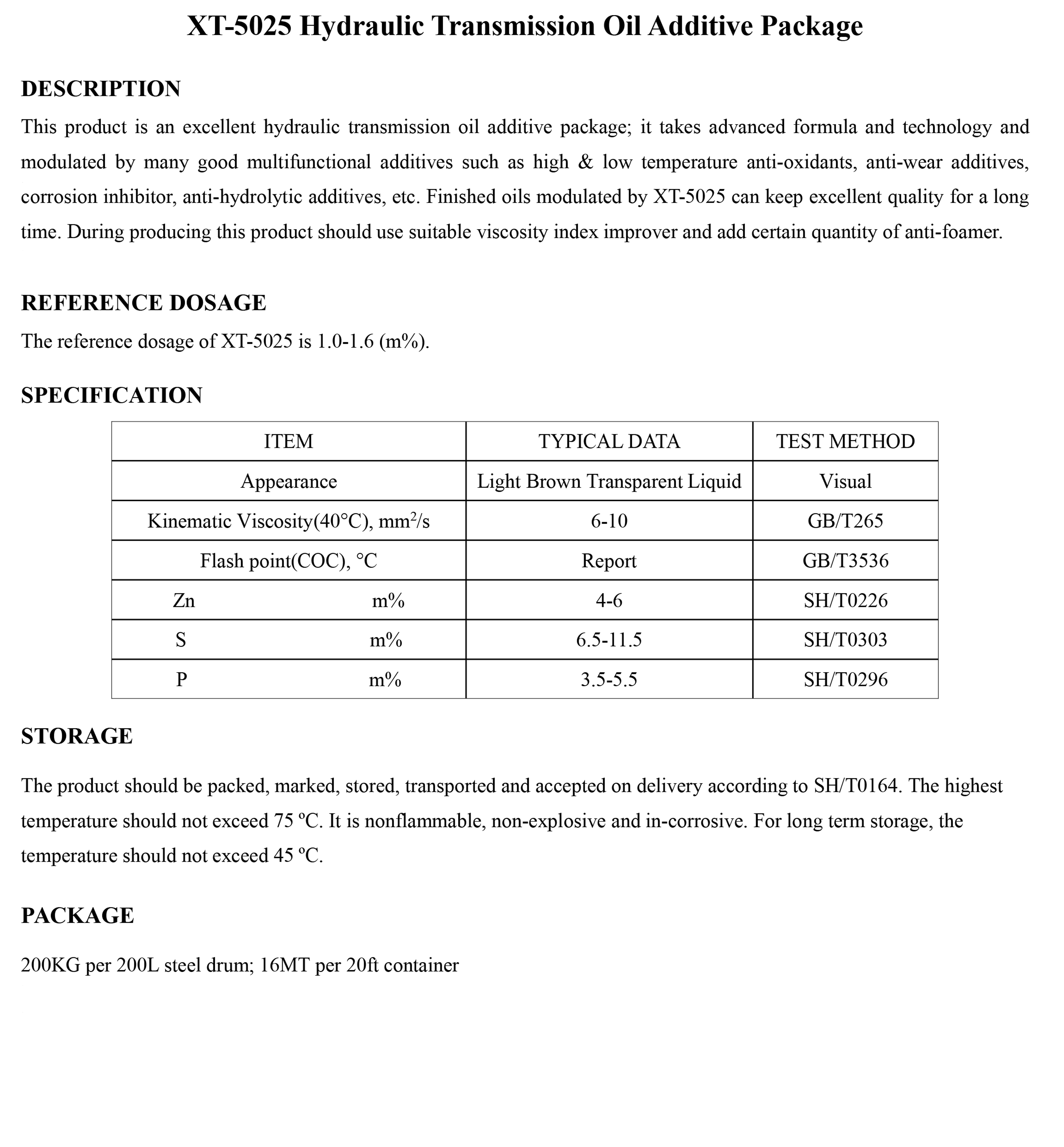 XT-5025 Hydraulic Transmission Oil Additive Package-Hydraulic Oil Additive Package-錦州新興石油添加劑有限責(zé)任公司