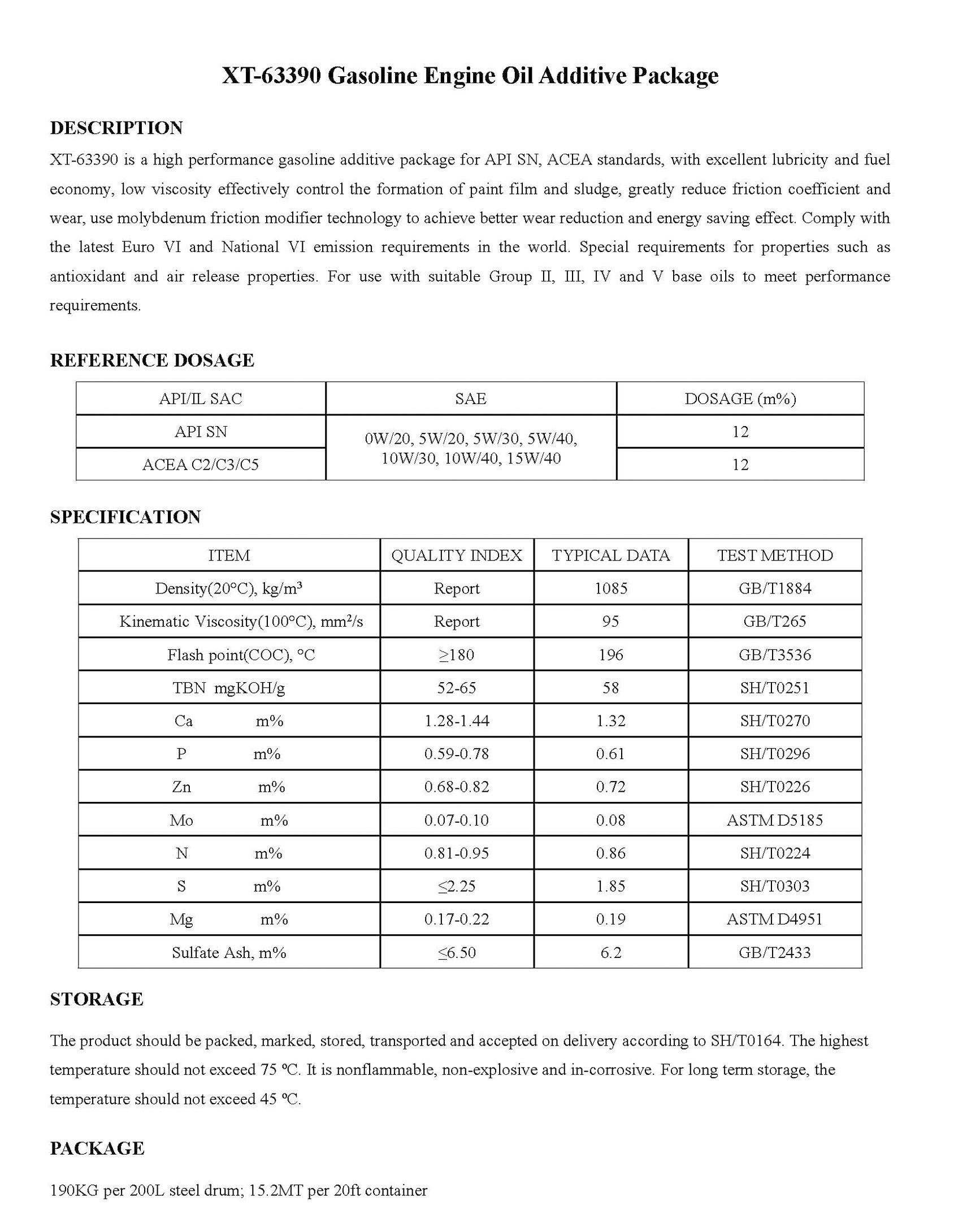 XT-63390 Gasoline Engine Oil Additive Package-Engine Oil Additive Package-錦州新興石油添加劑有限責(zé)任公司
