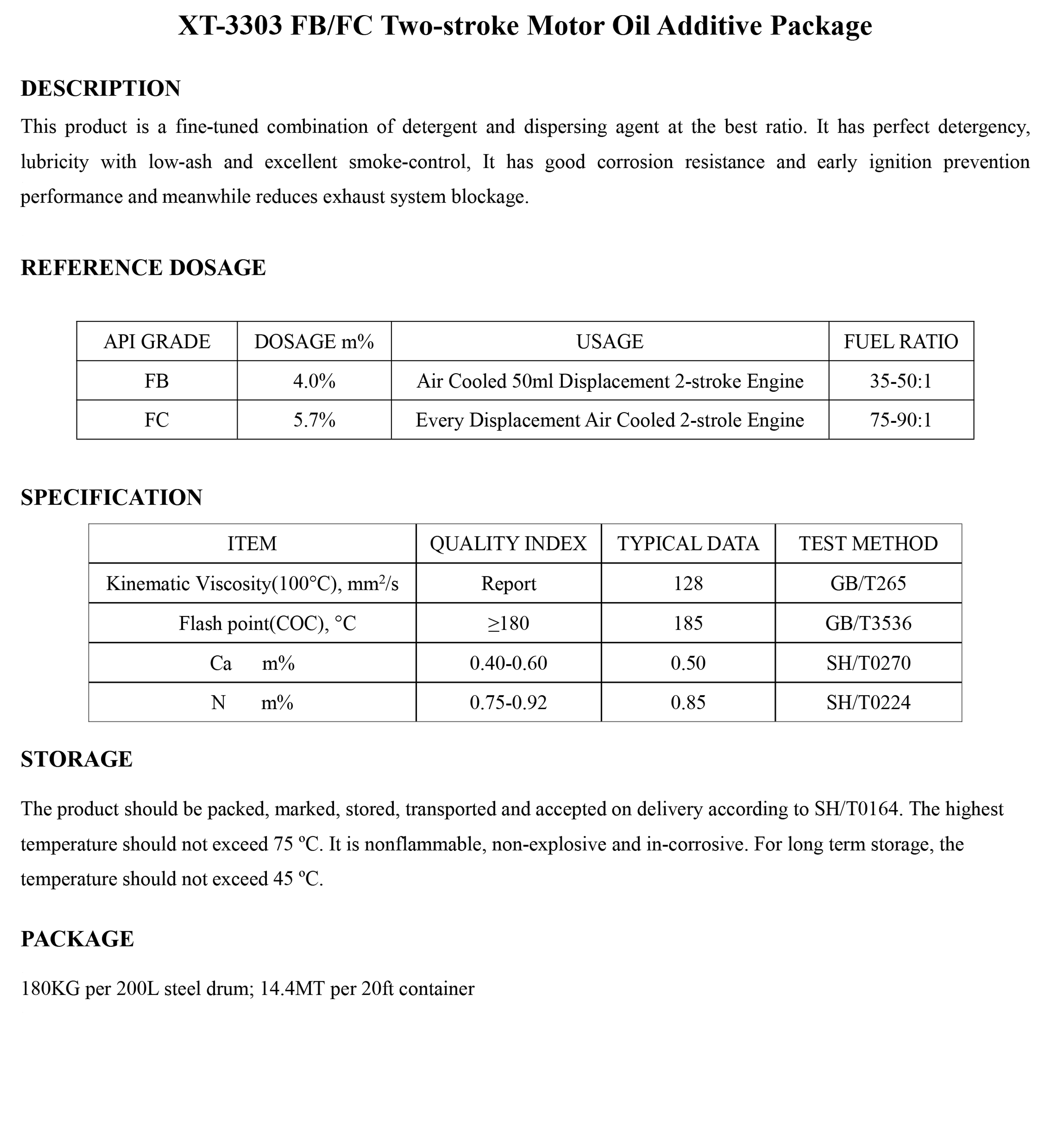 XT-3303 FB/FC Two-stroke Motor Oil Additive Package-Engine Oil Additive Package-錦州新興石油添加劑有限責(zé)任公司